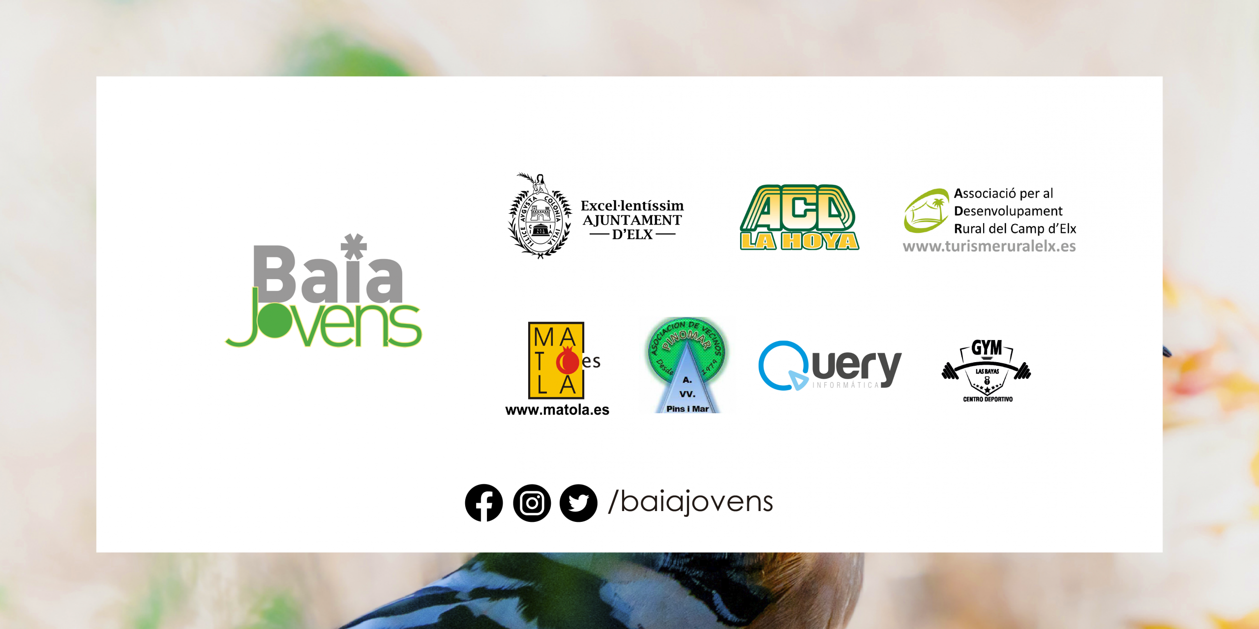 Desde el 1 de mayo y hasta el 1 de julio, os invitamos a participar en la sexta edición del ‘Concurs fotogràfic El Camp d’Elx’, en la que, enlazando la fotografía y el ‘camp d’Elx’, pondremos en valor la riqueza ymedioambiental del municipio, destacando la diversidad de su fauna, especialmente las aves y los insectos.